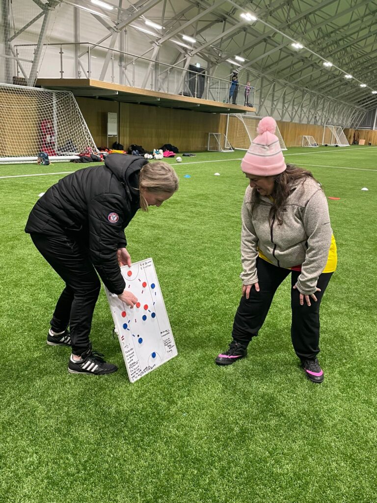 “We have an inclusive culture at our Women’s Walking Football sessions and welcome players of all abilities. Coaching Rosa has been great and has helped develop my coaching style. Rosa’s hearing impairment has given me the opportunity to develop my coaching skills by adapting my delivery style by explaining drills on a whiteboard rather than verbally.