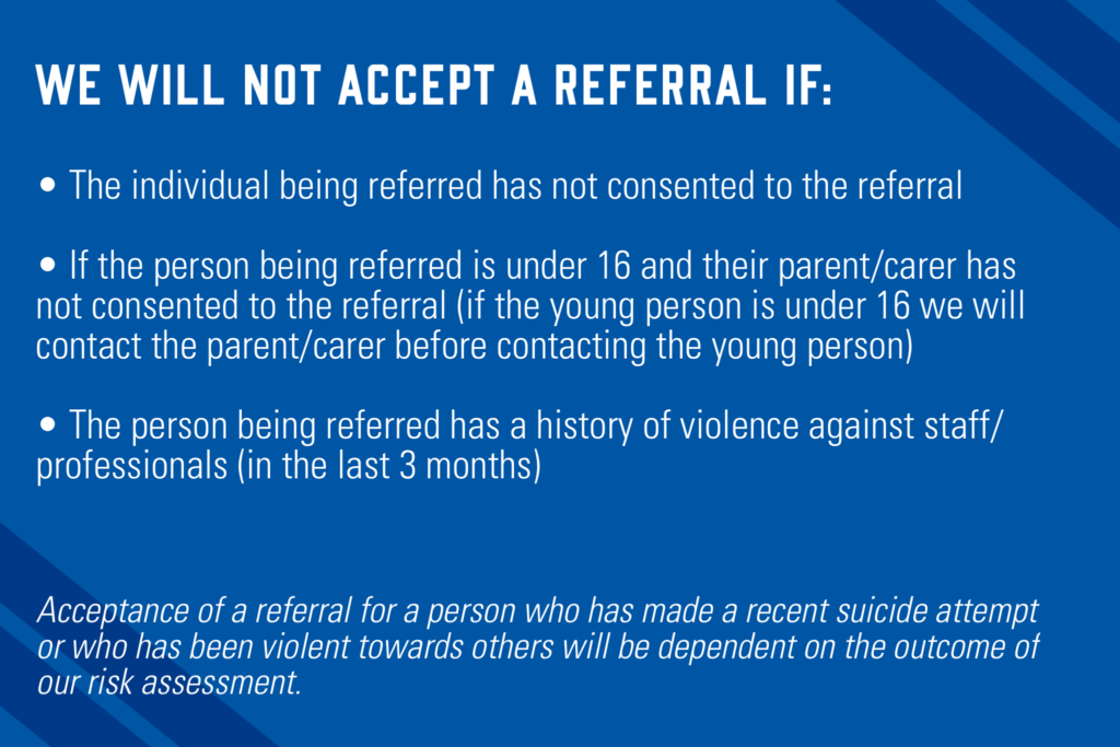 Referrals can be made by Schools, Health, Police, Statutory Agencies, Community and Voluntary Organisations and carers.