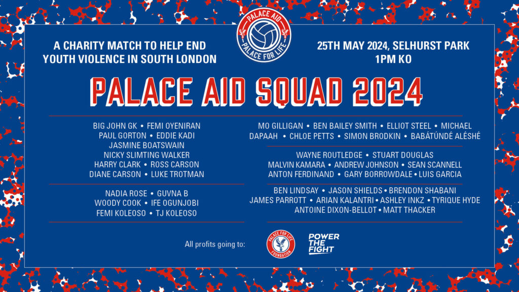 Palace Aid, Palace for Life’s annual charity match, is returning. Palace fans will have the chance to witness celebrities and former players compete for the revered Palace Aid trophy and raise money to help end youth violence in south London at Selhurst Park on May 25th.