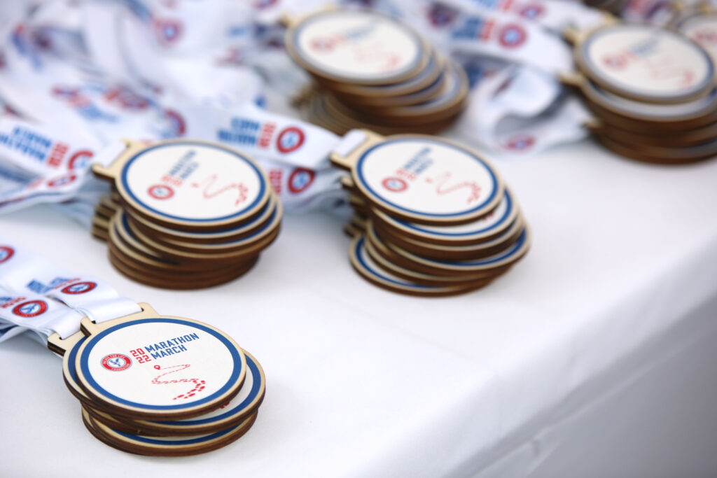 On the day itself we will provide you with your Marathon March T-Shirt as well as breakfast, lunch and dinner to keep you fuelled up during the 26.2-mile walk. Once you cross the finish line, your finishers medal will be waiting for you!