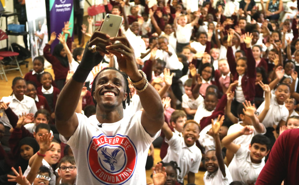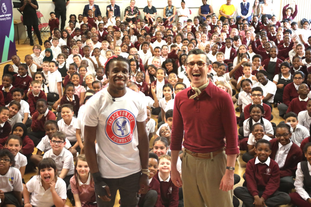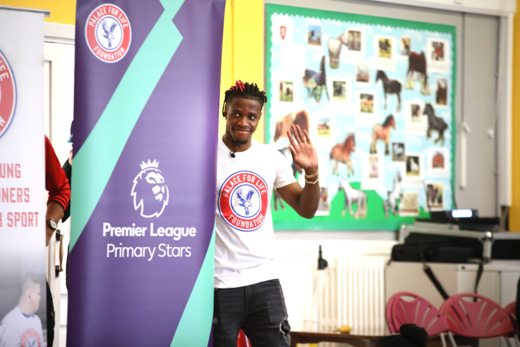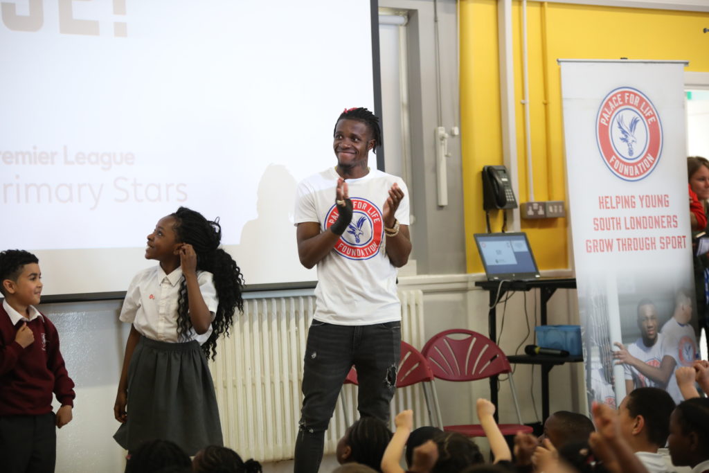 Local hero Wilf Zaha caused a stir at his former primary school when he took part in a special assembly with Palace for Life Foundation.
