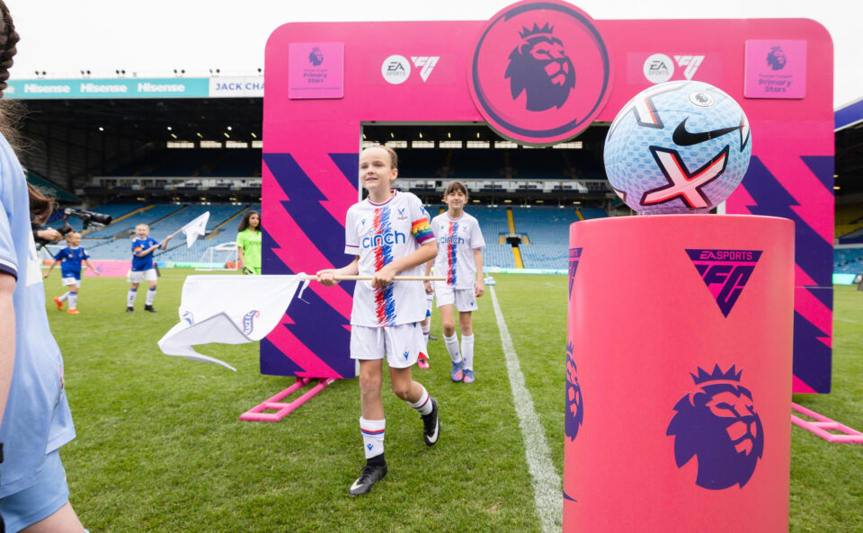 Molly waving the flag for Palace at the Premier League Primary Stars final at Elland Road