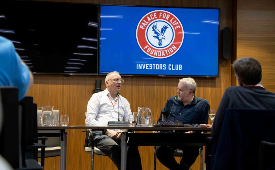 Following the success of the inaugural Investors Club exclusive event in November with Rob Quinn and Dom Fifield, our chairman and host Ed Warner was joined by comedian, podcaster, and Palace for Life Trustee Kevin Day and leading football finance expert Kieran Maguire, who performed a live version of their popular podcast The Price of Football at a venue in the City of London.