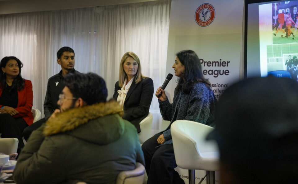 Guests were then welcomed by Palace for Life Patron and host for the evening, Saima Mohsin, who introduced the panellists for the evening – Angela Dainton, who was representing Baroness Gohir of the Muslim’s Women’s Network who spoke in depth about Muslim Heritage Month. Elsewhere on the panel was Professor Zainab Khan, the Pro Vice Chancellor of LSBU and vice-chair of the Premier League Equalities, Diversity and Inclusion Standard (PLEDIS), Dr. Nadia Gaoua (LSBU), and our very own participant-turned-coach, Abdullah Zaman.