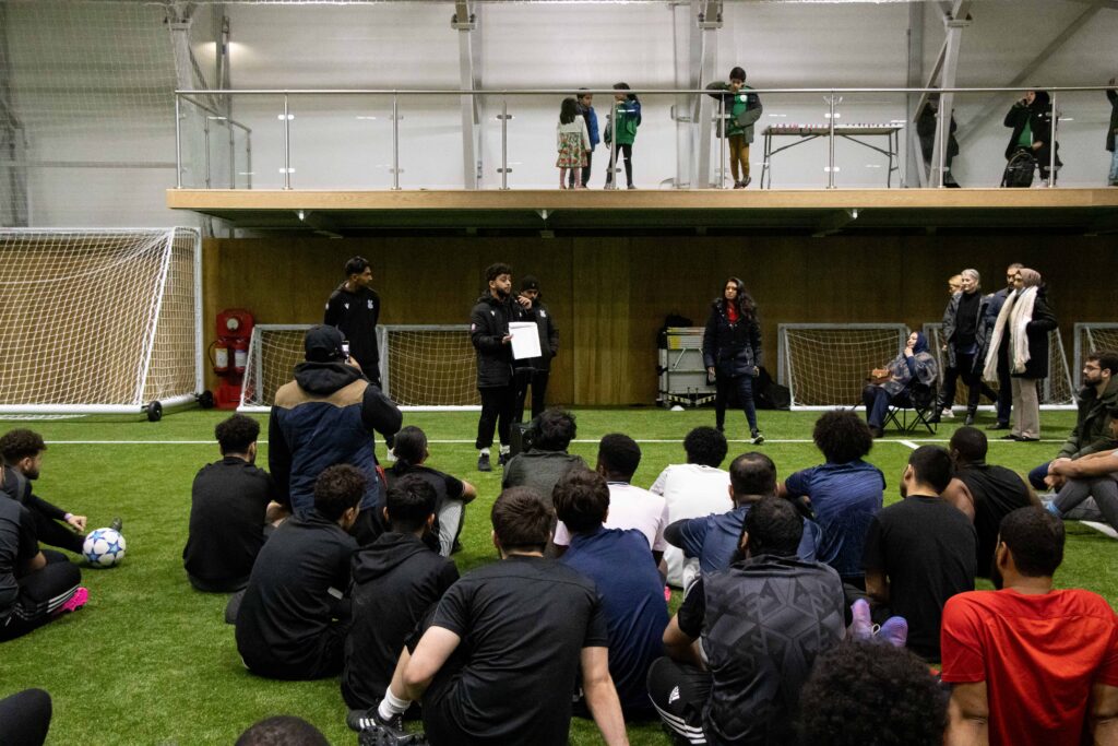 The group got together at Selhurst Park to organise the logistics of the tournament, aiming for a total of 16 teams to take part. Throughout their planning sessions, the volunteers split the load; some took on the responsibility of getting in touch with local mosques and other grassroots teams to recruit players, and others took on the role of researching charities and tournament logistics. The tournament set-up was a huge part of the planning, with the schedule and format both being considered, especially as they were planning for over 150 players. Every volunteer did their bit, using their network and connections to get as much of the community involved in the event as possible.