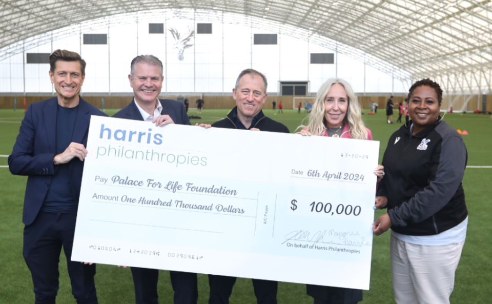 On April 5th, Josh Harris, co-owner of Crystal Palace, and Marjorie Harris visited the state-of-the-art Crystal Palace Academy facilities to present a $100,000 donation which will play a pivotal role in transforming the lives of local young people in south London. Accompanied by club Chairman Steve Parish, Palace for Life’s CEO Mike Summers, and Head of Pathways and Learning, Susan Patterson-Smith, the Harris’ were briefed on the significant impact their generous donation will have on the lives of young people who need vital support in taking the next step in their education, training or employment.
