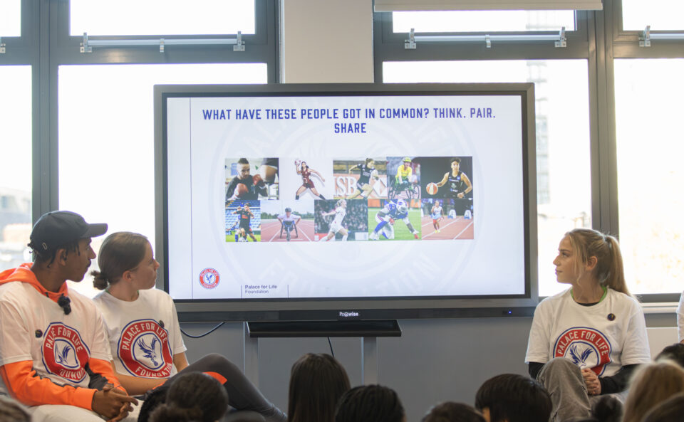 Ahead of the Premier League and Stonewall’s Rainbow Laces campaign, which will be celebrated at matches this week, Palace players Chris Richards, Polly Doran, Shauna Guyatt and Aimee Everett joined Croydon school pupils at a workshop about LGBTQ+ inclusion, acceptance, role models and active allyship to the LGBTQ+ community.