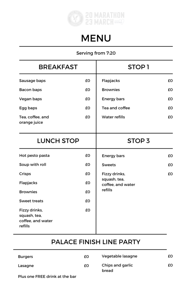 For the first time ever, we’re releasing our Marathon March menu ahead of time, so you know what fuel will be helping you over the finish line on 14th October.