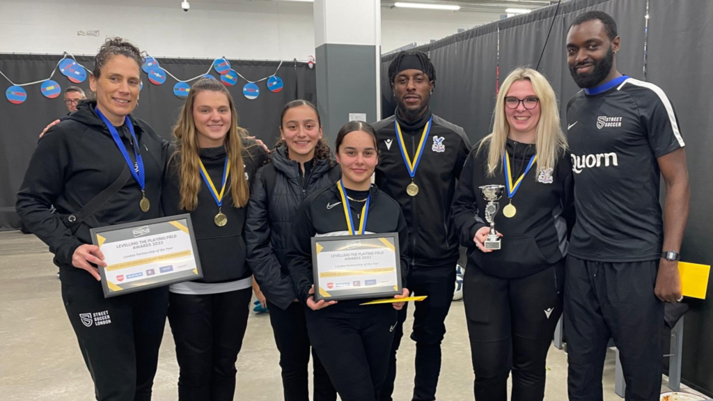 The partnership between Palace for Life and Street Soccer London won the London Partnership of the Year at the Level the Playing Field Awards night at Decathlon. This award was voted for by a panel from Levelling the Playing Field’s strategic partners.