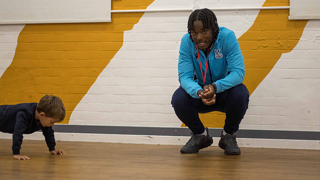 They helped deliver the lesson alongside Palace for Life coach Marcus, which included basic fitness in the form of running on the spot, planks, star jumps, and press-ups, before working on their passing, ball control, and balance in small groups.