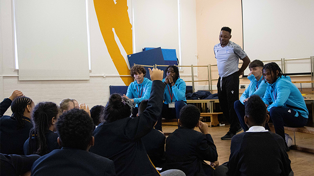 A group of Crystal Palace F.C.’s young scholars visited a primary school in south London to help deliver a PE lesson and answer questions about their career so far, helping to inspire primary school children in the community.